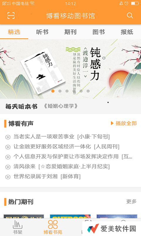 《博看书苑》是一款看畅销期刊的应用软件,软件内收录了党政、时事、军事、管理、财经、文摘、文学、情感、家庭、健康、时尚、娱乐、科技、教育、行业等40多类主流畅销人文期刊,并且每天都有更新上百部期刊。