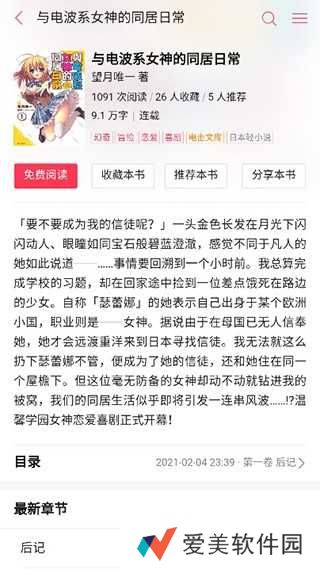 4、随便选中一本小说,是可以免费阅读、收藏、分享的;