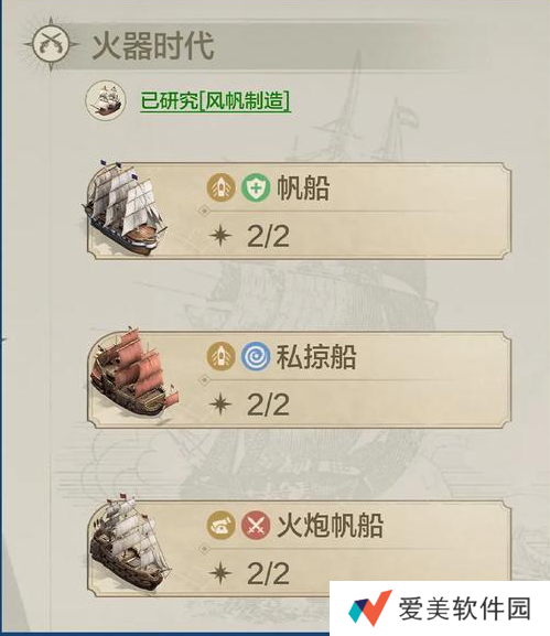 2、研究科技:科技推进至火器/工业/电气时代后,研究相应的舰船科技,解锁对应的海上舰船,在本纪元内使用。