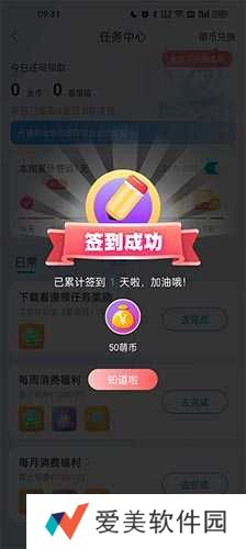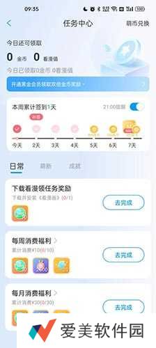 4、之后会来到任务中心页面,完成下列相应的任务可以获得萌币奖励。