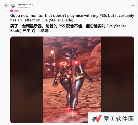 mayormcs Keeze在帖子中解释,这一画面的出现是由于他最近更换了新显示器,而这款显示器与他的PS5游戏机存在兼容性问题。他坦言,这个问题导致了游戏画面的比例失真,从而影响了伊芙的形象呈现。