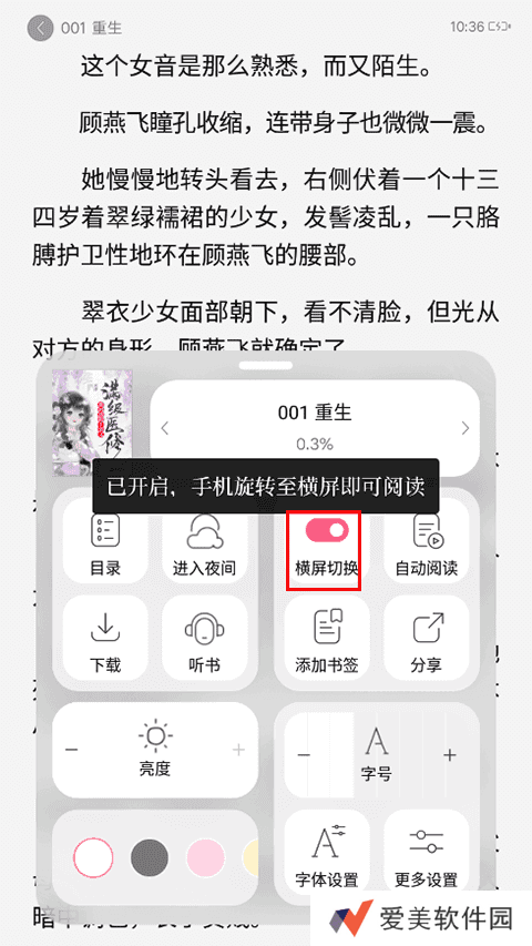 红袖读书怎么设置横屏?