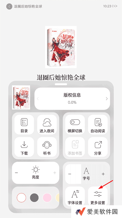 1、进入后选择一本书籍打开后,点击空白处会出现菜单,选择更多设置。