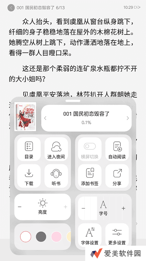 首先我们来到还是那个熟悉的小说阅读的界面,然后轻击屏幕呼出功能设置。