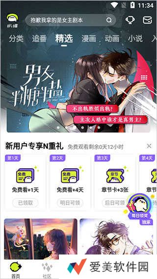1、首先打开软件进入首页,我们可以看到很多的精选漫画、动漫等等,用户也可以搜索自己喜欢的进行观看;