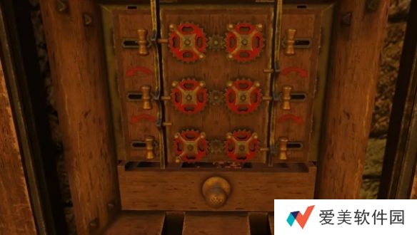 2、点击得到箱子旁的曲柄摇杆,将曲柄木杆插入插孔,摇动木杆,放入木头齿轮,再次摇动木杆,打开机关。