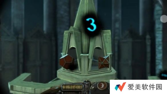 6、打开永恒之眼,拖拽调好齿轮位置,拉动右侧的拉杆,前往二楼,根据右侧木柜的锁孔调好钥匙,再拉动两侧的把手,楼梯降下。