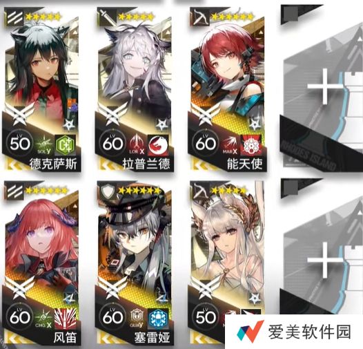 需求干员:德克萨斯、风笛(先锋x2),拉普兰德(领主),塞雷娅(奶盾),能天使、白金(速狙x2)