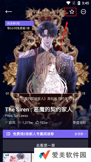 3、然后进入到作品的页面,点击五角星即可订阅。
