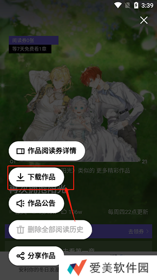 3、选择“下载作品”即可下载该漫画了。
