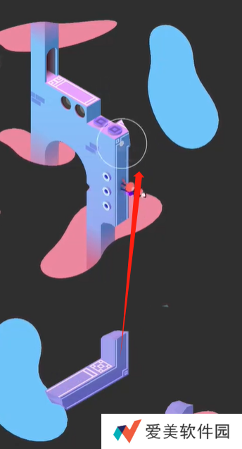 4、让主角来到图中位置,先上滑下方的机关,再向后滑动。