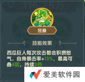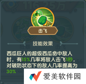 2、特殊能力:西瓜巨人每次发动两次攻击后,将召唤出一颗强大的超级西瓜,对该区域造成170%的攻击伤害。
