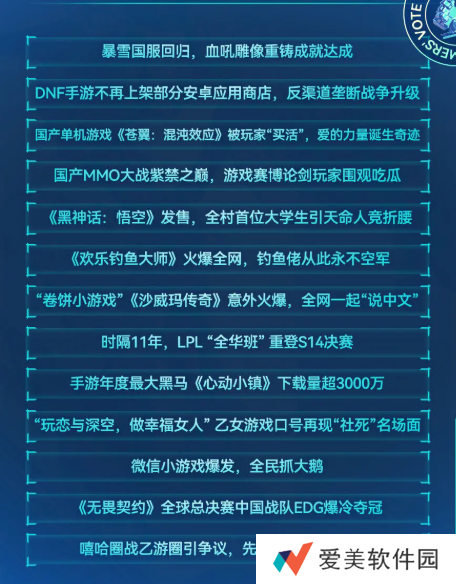 8、最终票数最高前5名入围,得票最高的游戏/角色获奖。