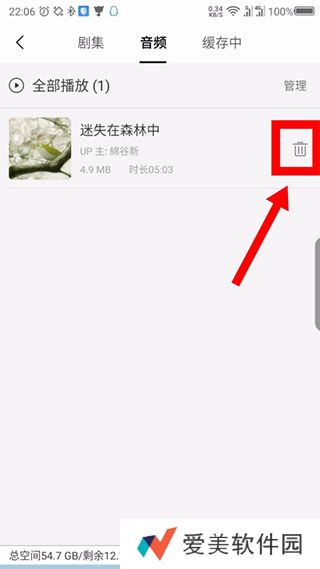 7、如果想删除下载的音频,可以点击后面的*箱图标;