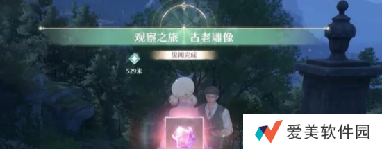 2、到达目的地,便能激活花愿镇的快速传送功能。接着,前往石柱附近与NPC角色阿文图拉交谈,探究那些雕像的详情。