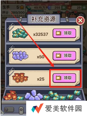 2、随即,补充资源的窗口便会弹出,在窗口底部点击“领取”按钮,便可获得升星徽章。
