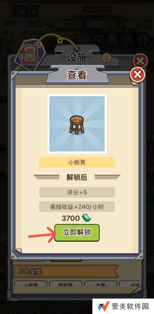 4、得到“小板凳”后,你的评分会直接增加5分,此外,还能为你带来连续240小时的离线收益。