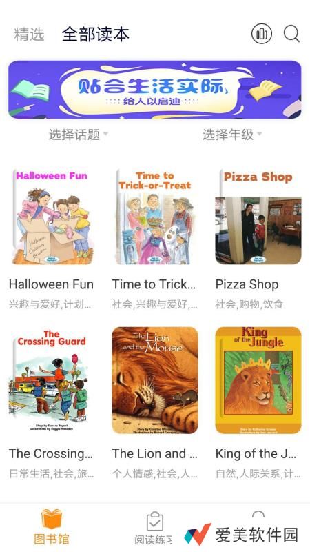 用户可以利用搜索与筛选功能查找相应的读本资源;