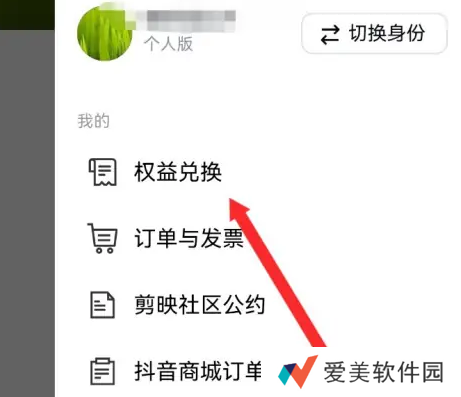 3、进入后,点击权益兑换。
