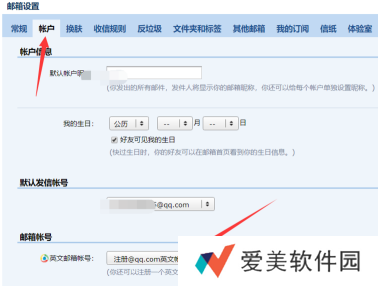 2、在邮箱设置中点击账户选项。