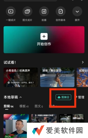 1、进入剪映,点击剪映云。