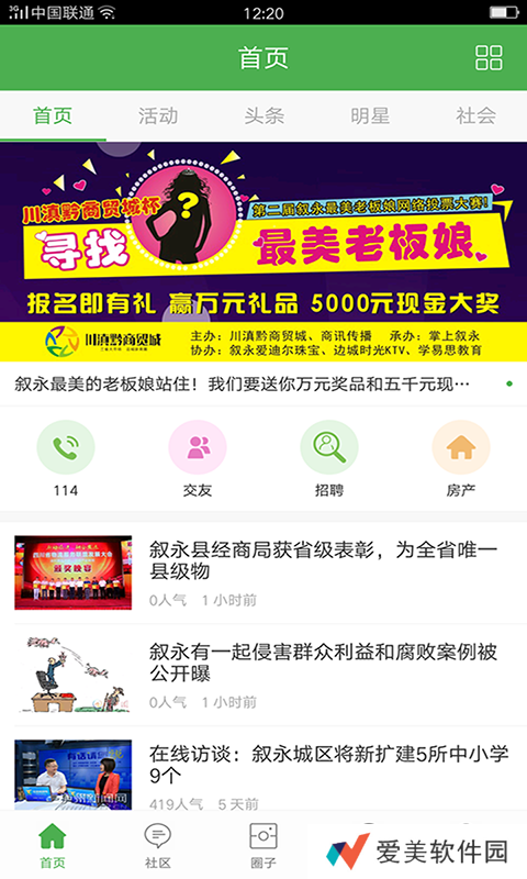 首页:里面包含热门资讯、活动等信息,可以随便查看;