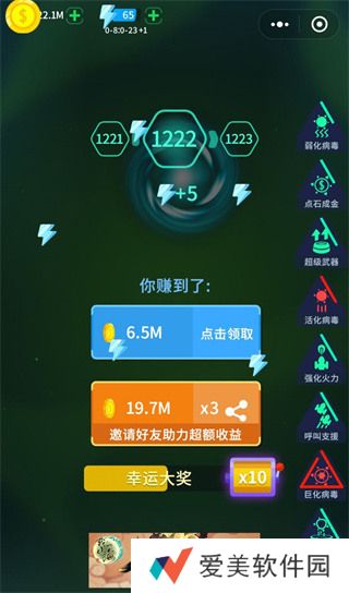 TOP4:电锯 危险系数很大的副武器,注意用电锯中间锯是伤害双倍,但是仍然不实用。 优点:靠近病毒可以将病毒进行快速攻击。 缺点:近战武器,容易撞脸,需要充能。 下载3733游戏盒子,领取bt手游礼包TOP5:护盾 爱的魔力转圈圈? 但是你别说,剩下的副武器里面还就这个撑得时间长一些。 这个圈圈比**都好用,**伤害虽高,但是太慢,病毒一多吃不了道具,就被挤死了。 绿圈圈能挤出安全的输出空间,但只要碰5次怪就会消失,所以个人感觉没啥用。TOP6:黑洞 反正我是不会使,伤害奇低,最后一关撑不到一分钟,但是比火炮强点TOP7:火炮 满级使用秒全场的火炮,遇到满级怪就像挠痒痒,最后一关基本进去秒死,跟没副武器差不多。 前期火炮还是很强的,后期就是**的天下,所有有火炮抓紧转型,后期无用。TOP8:紫色浮游炮(80关解锁) 优点:伤害高,对病毒进行大量伤害。 缺点:续航能力低,机动性差,只针对一个目标发起攻击。