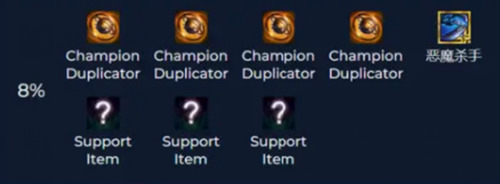 2、装备拆卸器+金铲铲冠冕*2+死亡之刃+10金币3、装备拆卸器*2+光明死亡之刃+光明无尽+死亡之刃+30金币二、10%概率1、90金币2、装备拆卸器+装备重铸器+金铲铲冠冕+奥恩装备*3+10金币3、装备拆卸器*2+光明狂徒+光明泰坦+金铲铲冠冕+五费棋子三、8%概率无限爆金币(2回合150金币)+概率爆英雄复制器