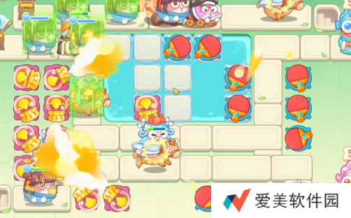 3、在右侧建造两个球拍并升级,集中火力清理右侧的道具。