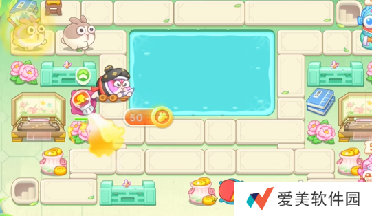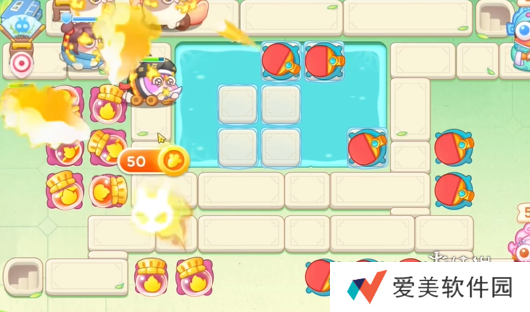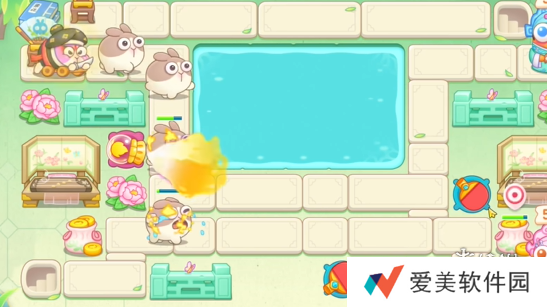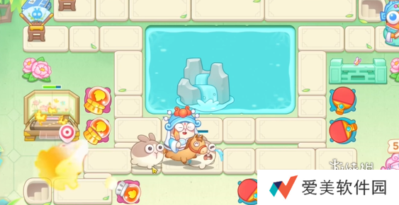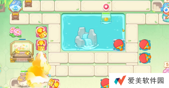6、将水池中的宝箱和道具清除后,补充两个球拍。