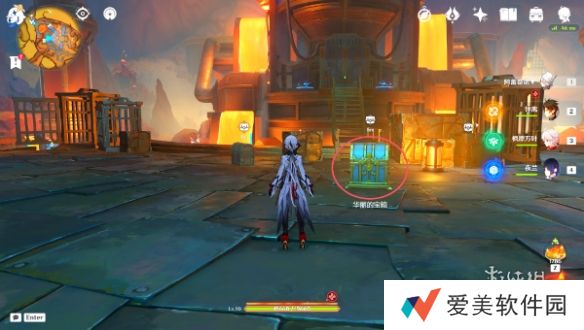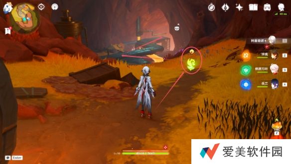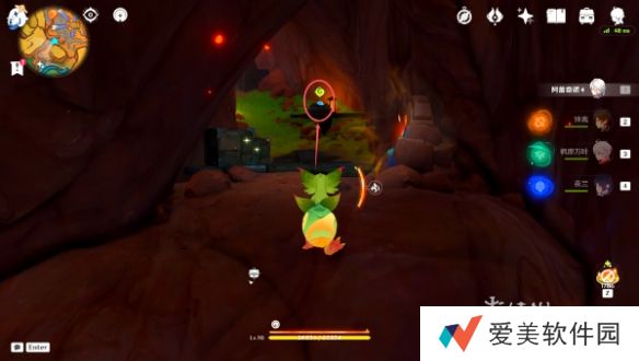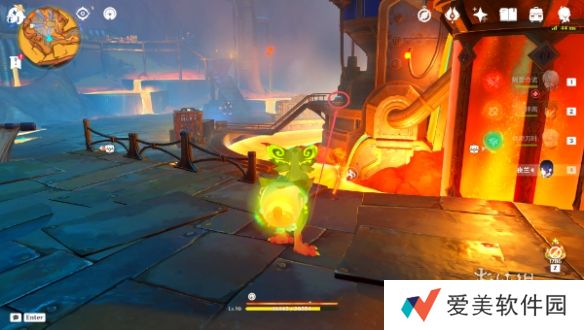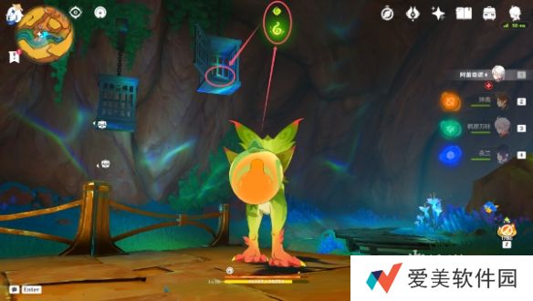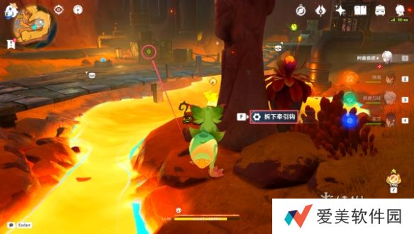 5、来到图中位置触发剧情,利用匿叶龙的能力收取岩浆里的传接球,瞄准「传接球」底座射出。