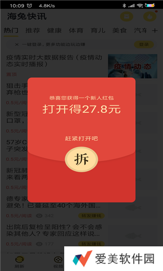 《海兔快讯》是一款可以非常不错的手机阅读赚钱软件,在这里看看新闻、资讯、今日热点就可以赚到好多钱,让你一边可以了解新闻资讯一边赚钱,是学生们兼职的最爱。