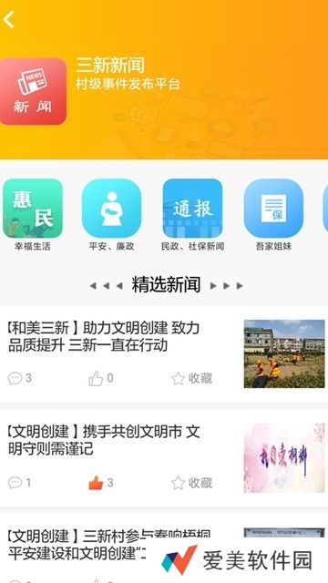 和美三新软件测评专门为三新村民群众开发的村务综合管理服务软件,用户可以使用这款软件了解最新的新闻资讯,查看全面的民生政策动态,同时涵盖了为民服务、三务公开、互动交流等诸多功能。
