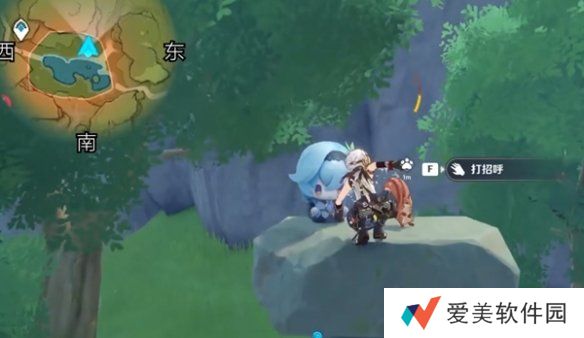 最后朝着这个石柱方向走,爬上去就能找到松鼠,旁边还有一个优菈玩偶。