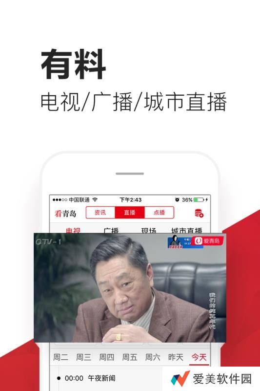 爱青岛app是一款为青岛居民打造的线上服务平台,集新闻资讯、生活服务于一体,用户可以在这里阅读当地的时事新闻,也可以在这里享受到优质的生活服务;资讯、直播、点播等频道一应俱全,满足用户的需求,让用户可以了解到更多的精彩事件,用户选择自己稀罕的内容就可以在线观看,非常的方便,告别电视,随时都可以自由观看,实现移动观看,走到哪里看到哪里,非常的灵活自由,不受地域的限制,并且新闻推送的速度非常快,第一时间为你推送资讯。