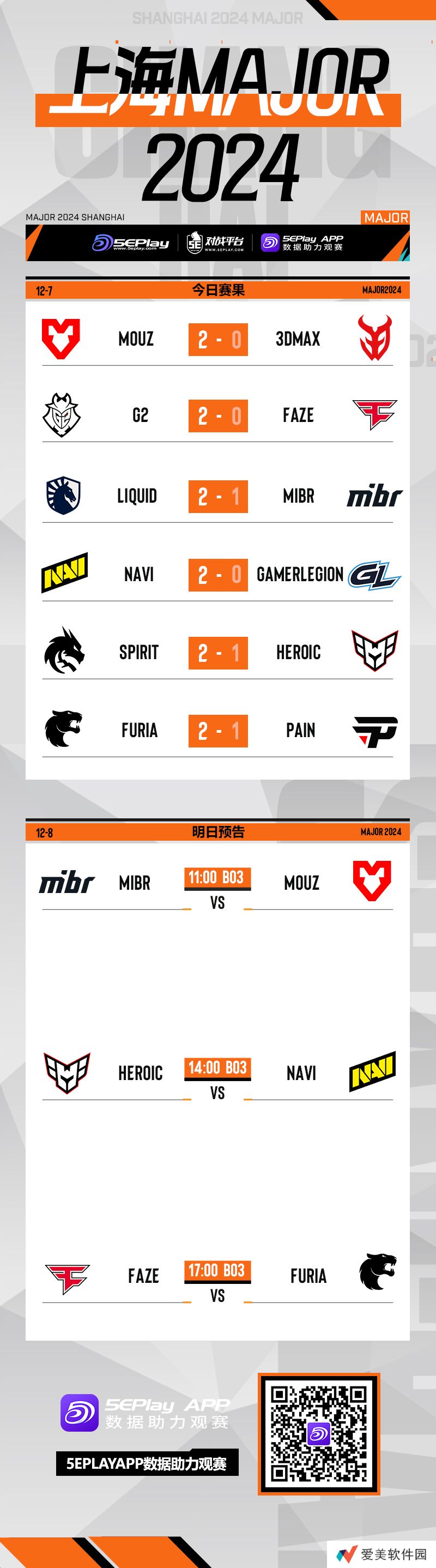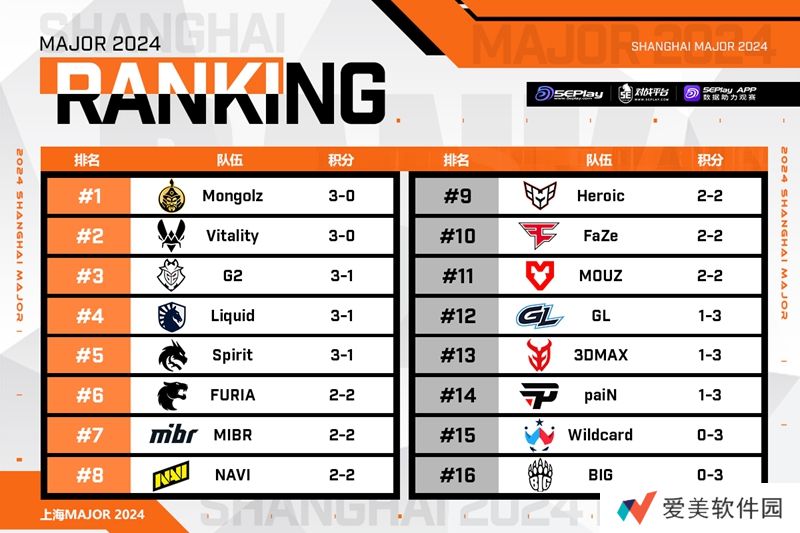 FURIA明日也要同样进行最后一轮的争夺赛。以下为今日赛果、明日预告和积分榜一览。
