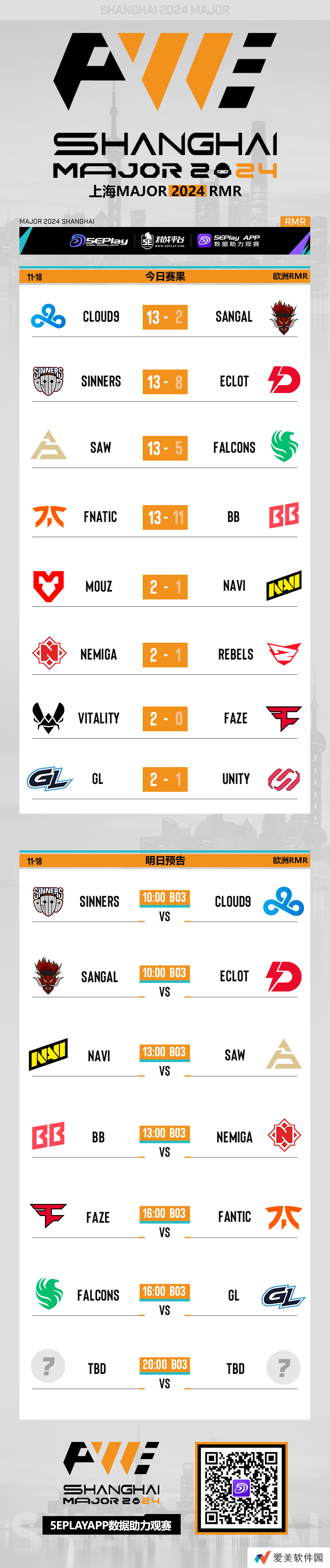 上海Major欧洲RMR A组的第二日比赛也已结束,在今日比赛中,