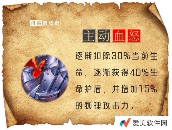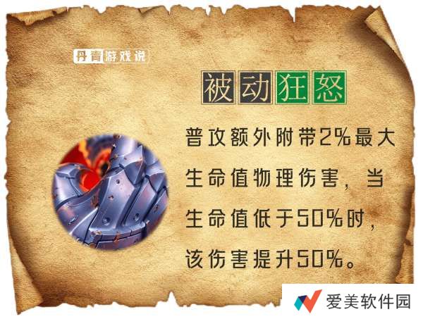 狂怒的存在,使英雄的普攻伤害更高,在血量下降至50%以下,仍有一定的输出能力。