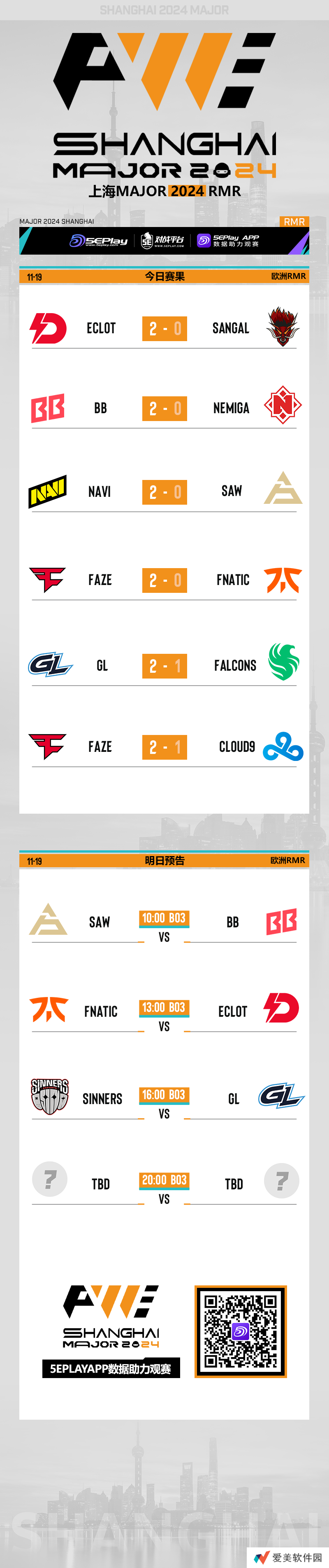 上海Major欧洲RMR A组第三日比赛已经结束,今日四个传奇组名额全部出炉,分别为