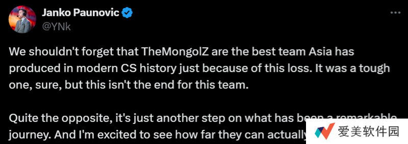 YNk:我们不应该因为这次失利而忘记The MongolZ是亚洲现代CS历史上最强的队伍。这场比赛确实很艰难,但这并不是这支队伍的终结。