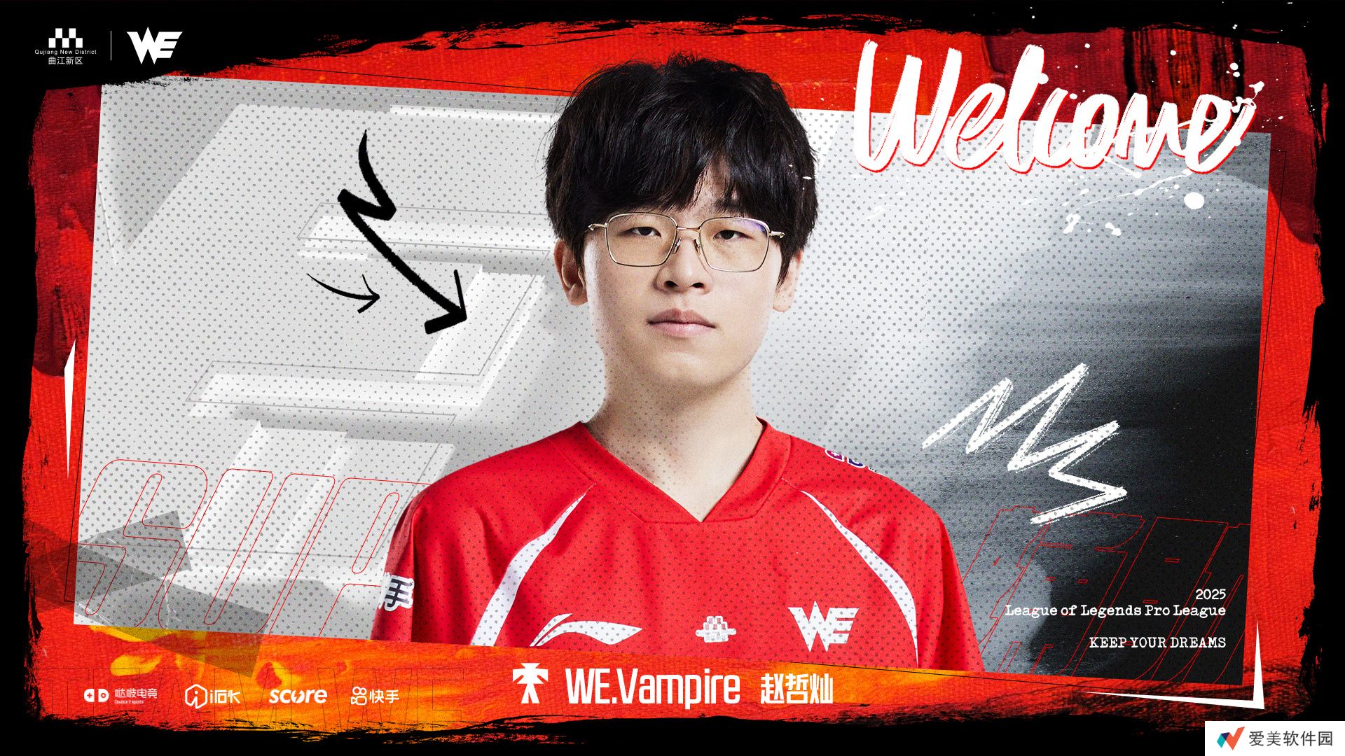 经过双方友好协商,我们非常高兴地向大家宣布,即日起,Vampire(赵哲灿)正式加入西安曲江WE电子竞技俱乐部,担任英雄联盟分部辅助位置选手。