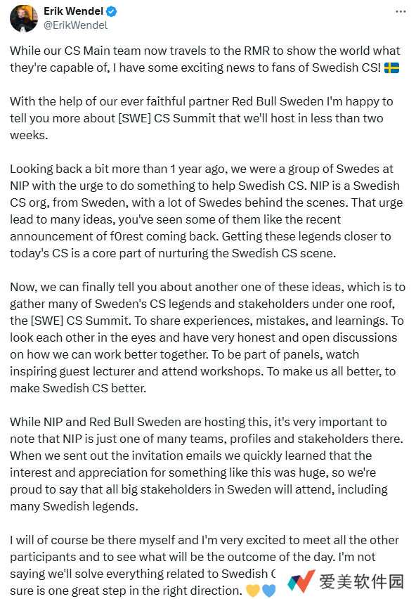 “当我们的CS主队现在前往上海Major 欧洲RMR向世界展示他们的能力时,我也有一些令人兴奋的消息要告诉瑞典CS的粉丝们!
