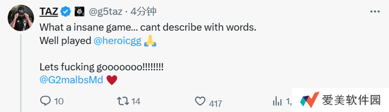 TaZ:多么精彩的一场比赛,难以用语言来形容。