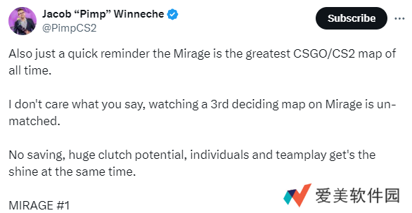 “另外,我还要提醒大家,Mirage就是CSGO和CS新版本有史以来最伟大的地图。