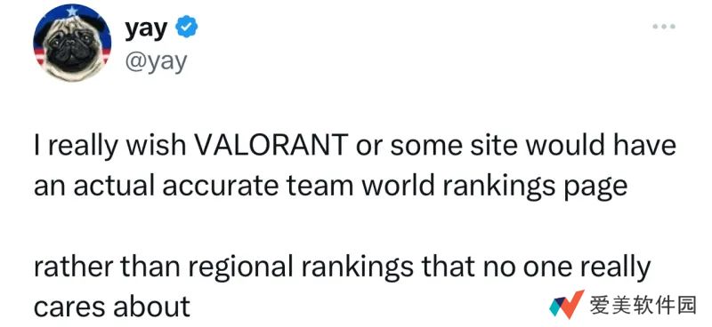 无畏契约明星选手yay发文表示想要一个准确的队伍世界排名。原文大意如下: