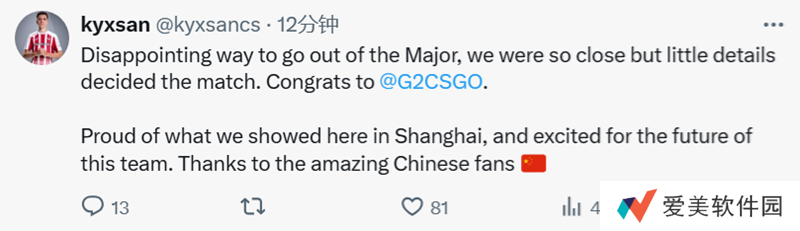 kyxsan:以失望的方式告别Major。我们如此接近,但最终细节决定成败。祝贺G2。