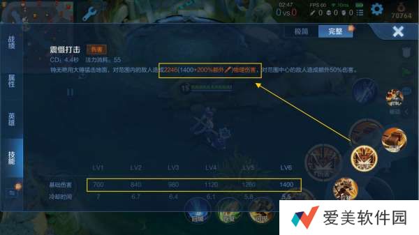 从上图我们可以看出,在技能满级+六神装的加持下,钟无艳二技能的基础伤害是1400点,加上2倍额外物理攻击力加成,一锤下去的伤害量就高达2246点!