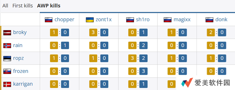 Robin Kool | ropz平分秋色之外,对于其他FaZe选手也占据优势。