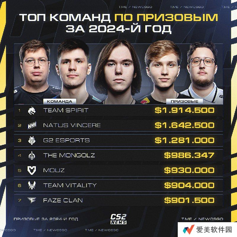 Spirit在收官之战中夺得俱乐部历史上第一座Major冠军奖杯的同时,也将50万美金的冠军奖金收入囊中。目前,Spirit所获奖金池数额已赶超NAVI,突破190万美金,成为今年赢得奖金最多的队伍。