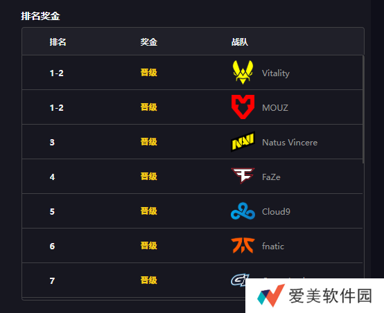晋级战队名单: